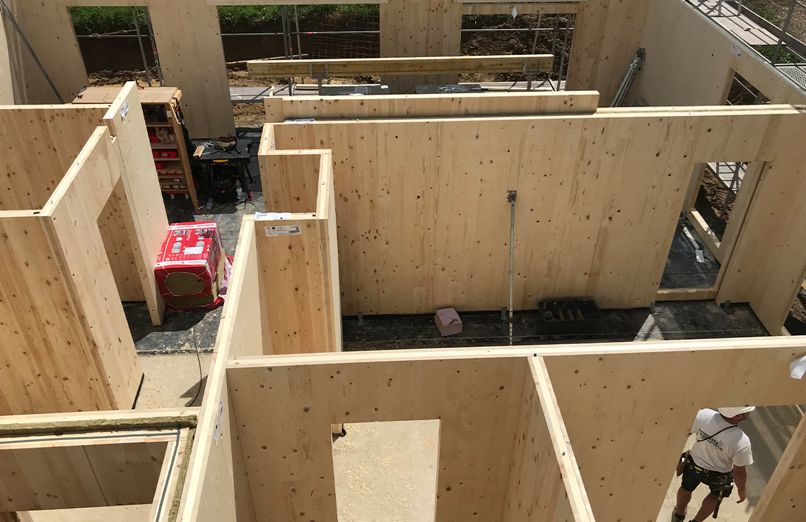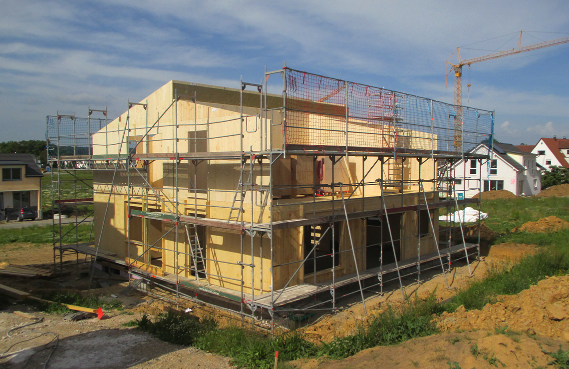 Holz ist ein nachwachsender Baustoff der ein angenehmes Raumklima schafft und eine gute Energiebilanz aufweist. Zudem ermöglicht der Werkstoff ein passgenaues und rasches Arbeiten für die Gebäudekonstruktion und alle nachfolgenden Ausbaugewerke.