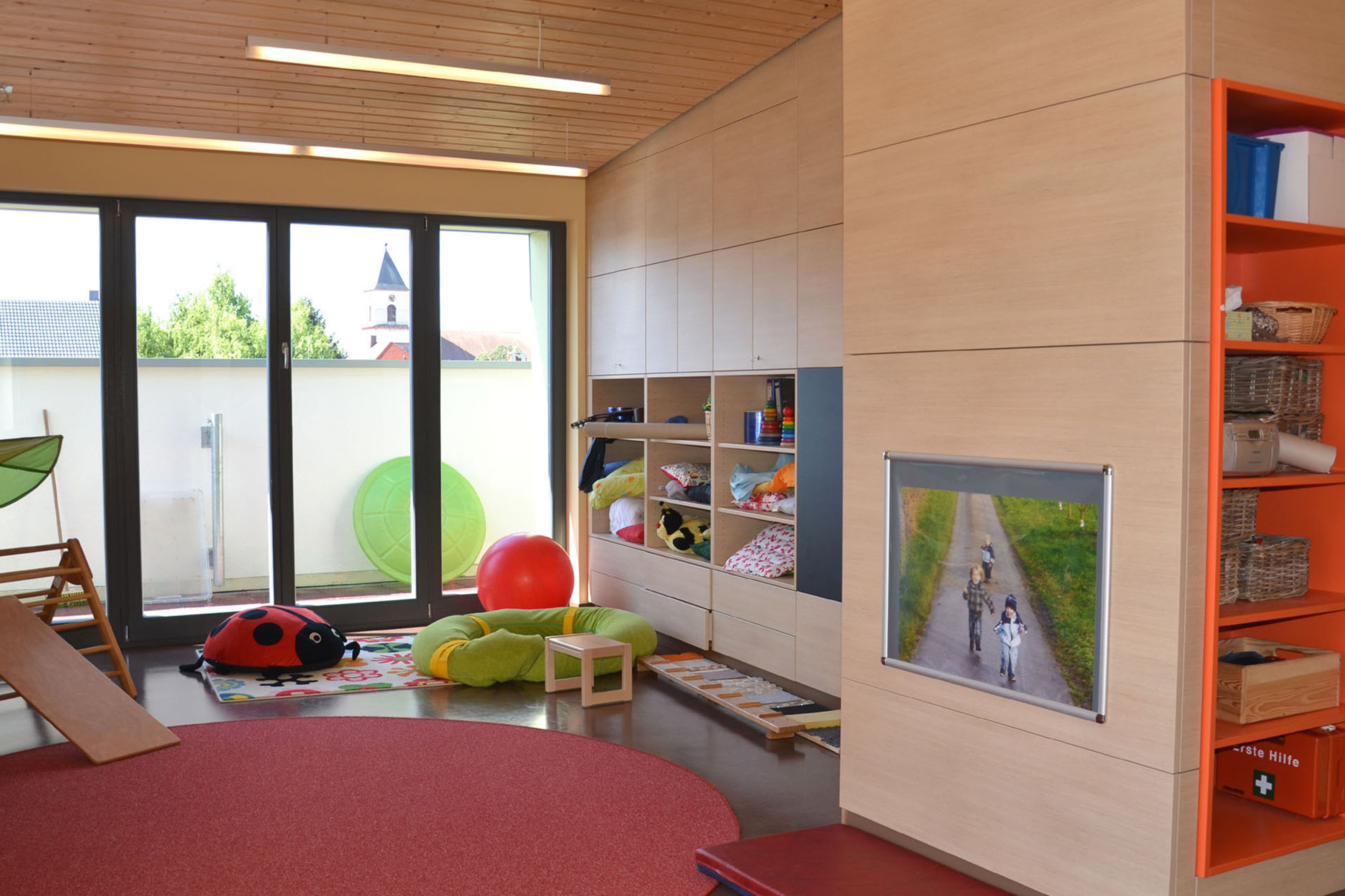 Der städtische Kindergarten in der Schillerstraße 3 in Renchen wurde im Jahr 2009 vom ortsansässigen Architekturbüro Schäfer um ein Gebäude mit zwei Kinderkrippen erweitert.